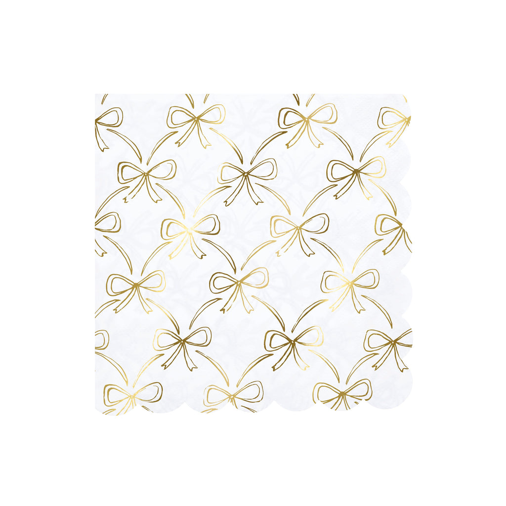 Dale un toque especial a tu fiesta con estas elegantes servilletas de papel. La combinación de moños dorados y borde con ondas le dará a tu mesa un toque sofisticado y natural, haciendo que cada detalle brille. Las servilletas desechables nunca han sido tan elegantes y son perfectas para toda la familia.