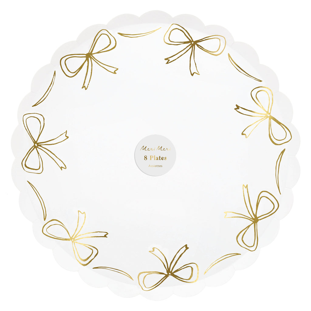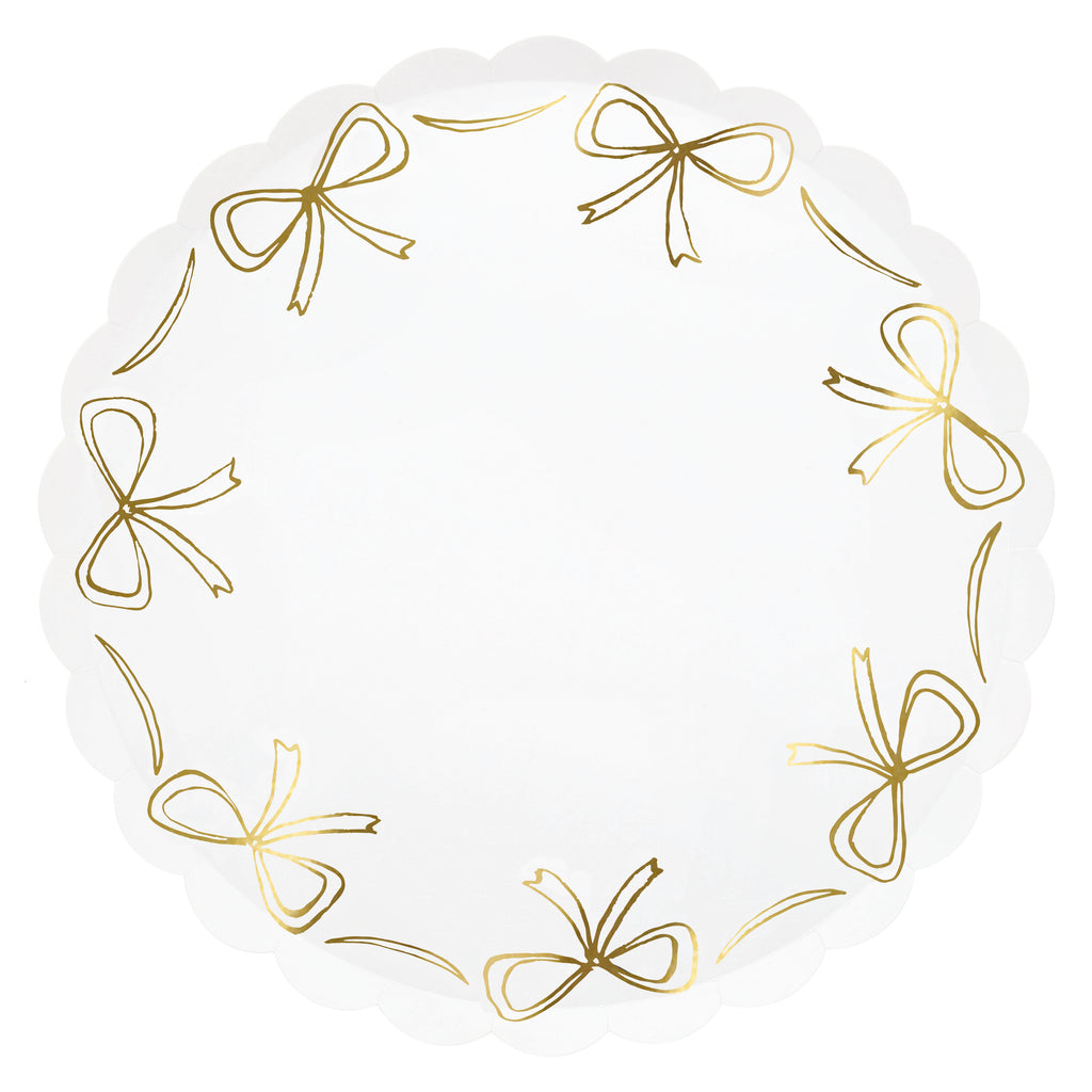 Dale un toque especial a tu fiesta con estos elegantes platos de papel. La combinación de moños dorados y borde festoneado le dará a tu mesa un toque sofisticado y natural, haciendo que cada detalle brille. Los platos desechables nunca han sido tan elegantes y son perfectos para toda la familia. Ideales para Navidad, Año Nuevo, bodas de oro, despedidas de soltera y cumpleaños especiales.