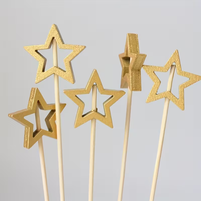 Palillos para adornar fiestas, estrellas doradas y plateadas, decoración para comida y pasteles