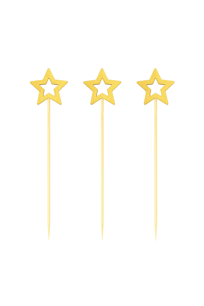 Palillos para adornar fiestas, estrellas doradas, decoración para comida y pasteles